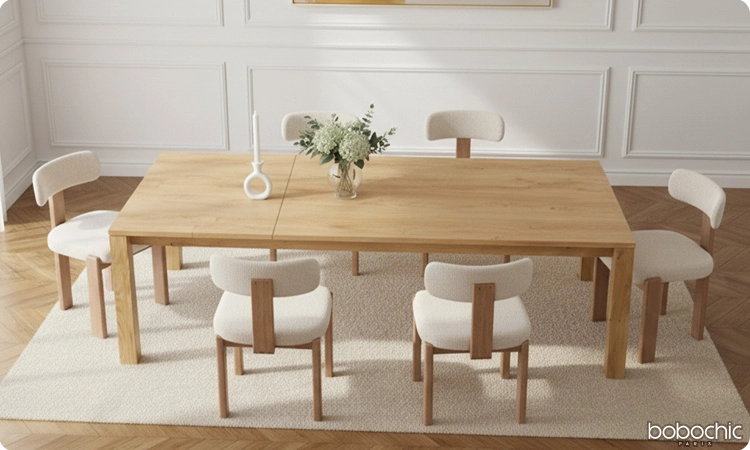 Chez Bobochic, la table à manger extensible combine design, qualité des matériaux et finitions haut de gamme pour s’intégrer harmonieusement dans tous les styles d’intérieur.